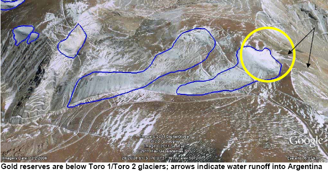 Here are some actual photos showing glaciers Toro 1 & Toro 2 where significant amount of Barrick’s gold reserves are located:
