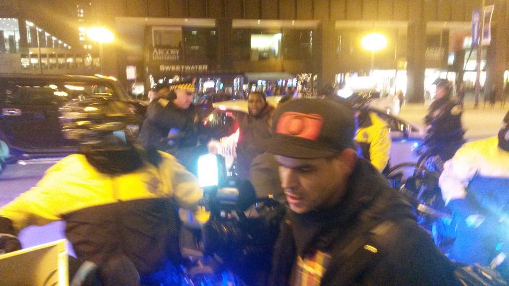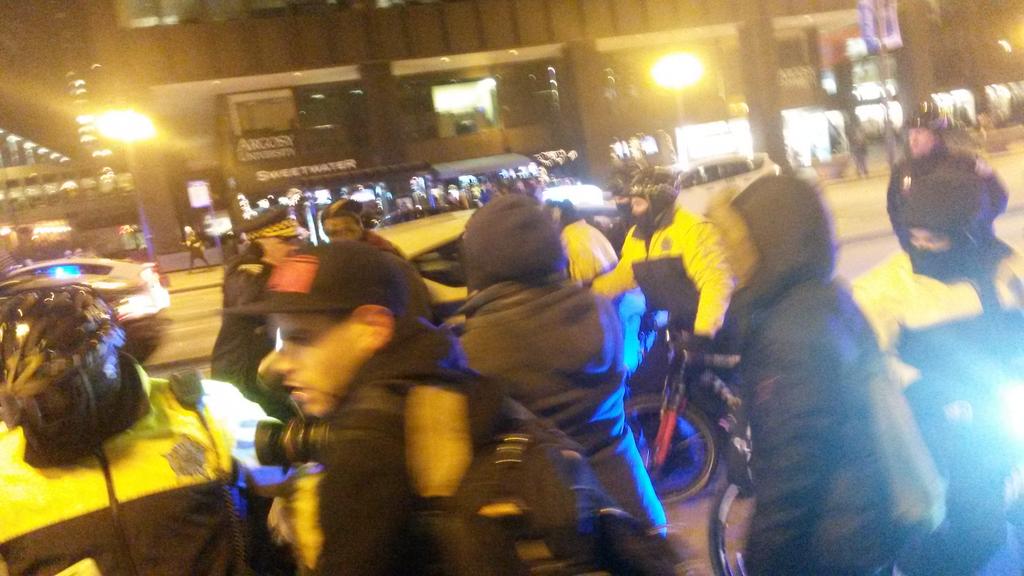 Cops grabbing people trying to pass through police lines & throwing them around at #Chi2Ferguson demo on Michigan ave