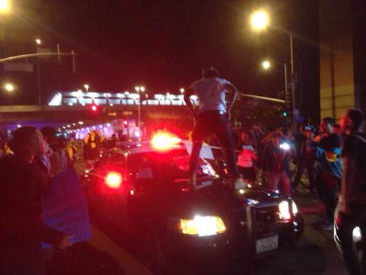BREAKING #FergusonDecision protest in #LA overtakes 3 police cars http://revolution-news.com/live-video-from-ferguson-grand-jury-indictment/ … ShuttingitDown 4 #Ferguson