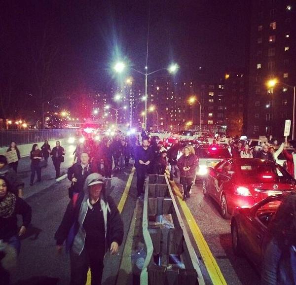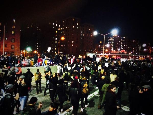 #Ferguson protesters have completely shut down the highway and all traffic between downtown and west side. This is huge.