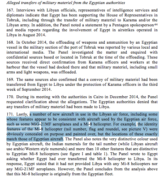 UN #Libya panel finds evidence Egypt gave helicopters to Haftar, simply painting over markings http://www.un.org/ga/search/view_doc.asp?symbol=S/2015/128 …