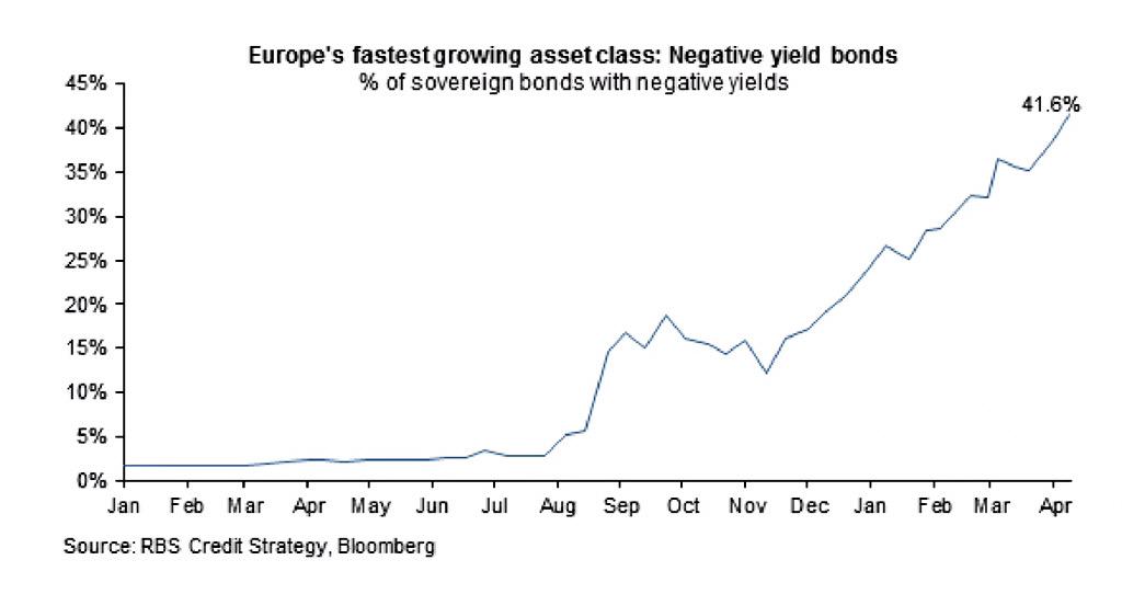 #Europe's fastest growing asset class: Bonds with negative yields. Now 77% of German govt bonds yield neg. (via RBS)