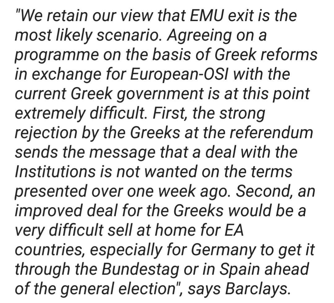 Merkel just told Greece only offer on the table is harsher than what Referendum said No to