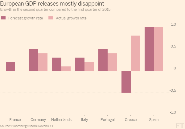 Eurozone economy grows just 1.3% Y/Y in the year ending Q2 2015