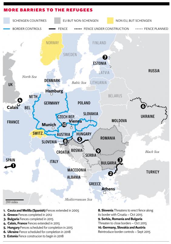 Map showing how Europe is building barriers to control people flows, by @Independent http://ind.pn/1NxTrg6