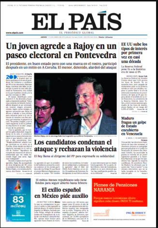 El País: "Youth attacks Rajoy during election walkabout in Pontevedra".