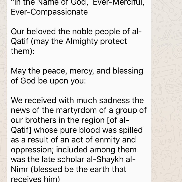 Grand Ayatollah Sistani statement on Sheikh Nimr's execution & his message to the people of Qatif, Saudi Arabia.