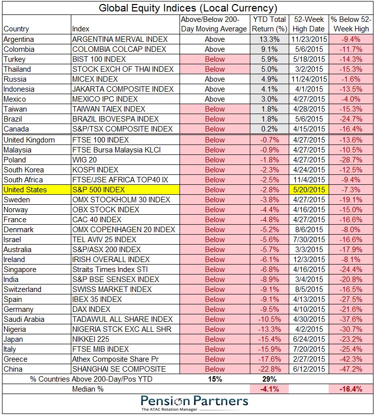 Global Equities: up to 10 countries with positive YTD returns, top 9 are all Emerging Markets. S&P: -2.8% YTD.