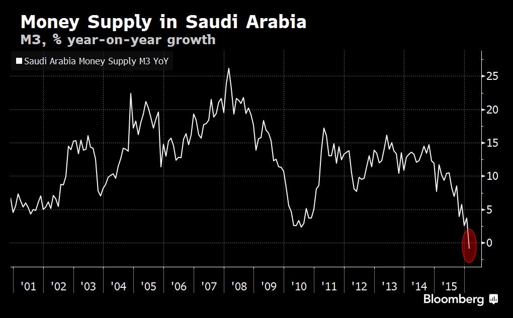 Money supply in #SaudiArabia (M3 aggregate) drops y-o-y for the first time in 15 years http://bloom.bg/22UG9BI #oil