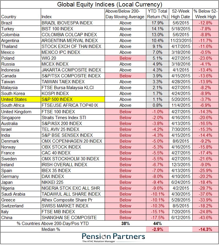 Highest close since December 30th, 2015 for the S&P 500, up 1.1% YTD. Emerging Markets still leading in 2016.