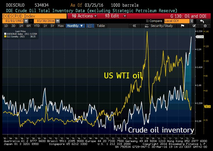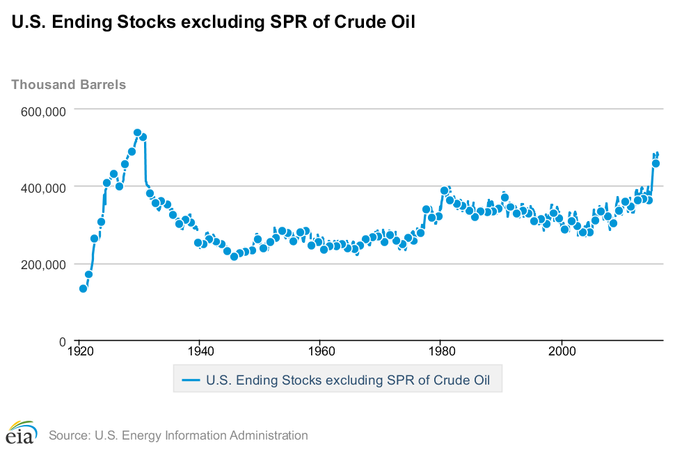In 1929, US #oil stocks peaked at 545.2m barrels. In the next month, the nearly 90-year old record could be beaten