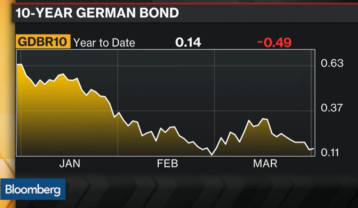 The yield on GER 10y bunds heads for the biggest quarterly slide in 5y, chart @BloombergTV http://goo.gl/jWWV2g