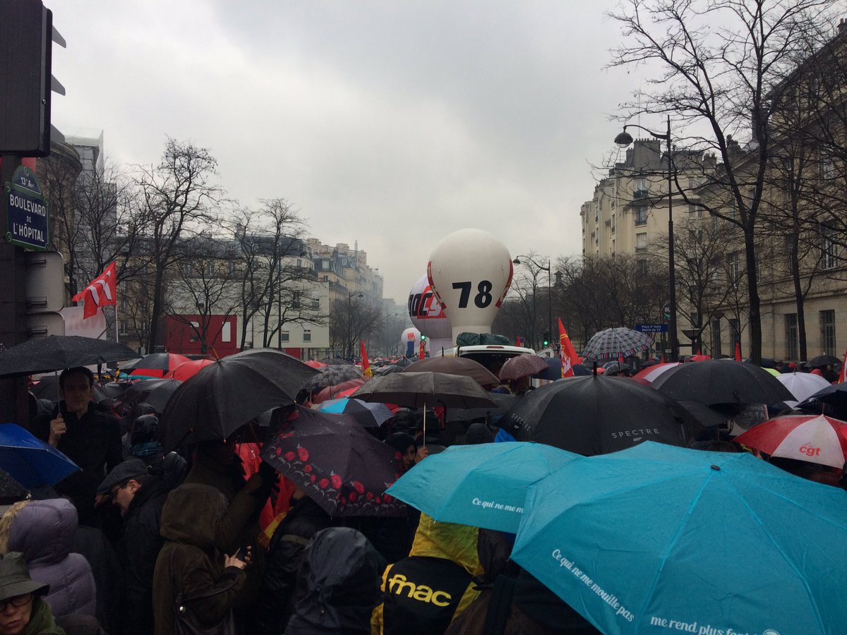 Massive (and very wet) crowds at the labour reform marches in southern Paris.