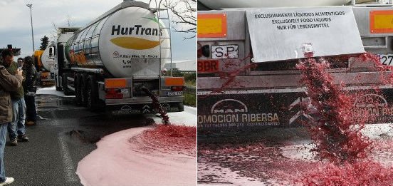 Spain sees red as French farmers block trucks and dump vino all over autoroutes http://bit.ly/1TBlznD