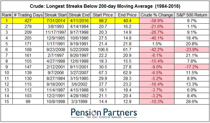 First time since July 30, 2014: Crude Oil closed above its 200-day moving avg. Longest downtrend in history ends.