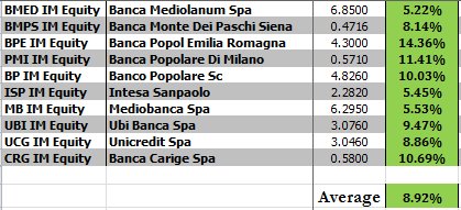 Major Italian Banks rally led by Pop Emilia (+14.36%), Pop Milano (+11.41%) and B Pop (+10.03%)