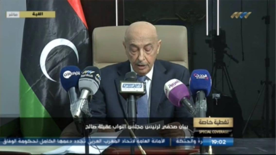 Breaking: #Libya Parliament President Agila Saleh makes speech on TV about UN-appointed Sarraj gov and EU sanctions