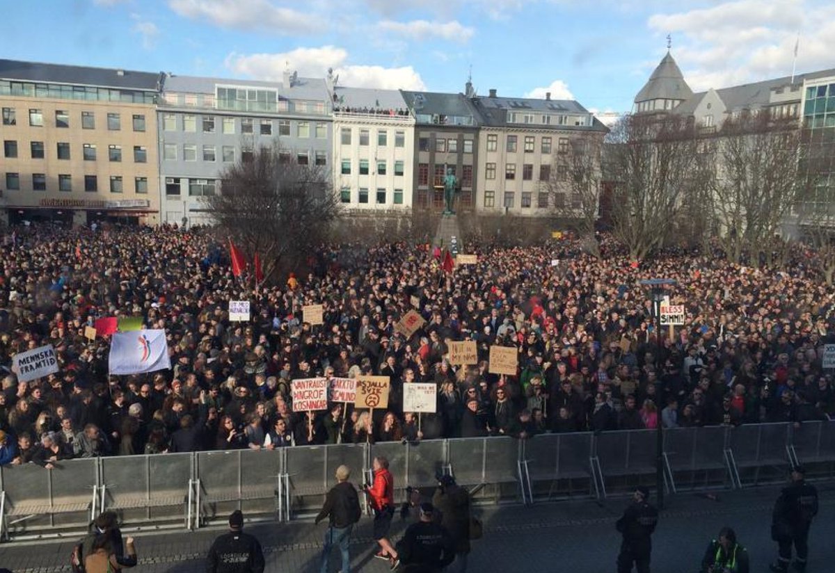 Protesters in Iceland are not pleased with government's attempt to reshuffle cabinet in wake of #PanamaPapers. http://interc.pt/1S0baiU