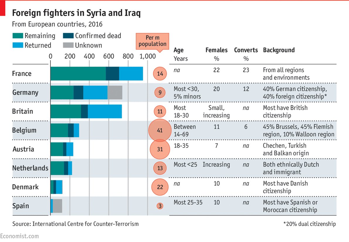 Two-thirds of Europe’s jihadists hail from four countries: Belgium, Britain, France, Germany http://econ.st/22hKAV3