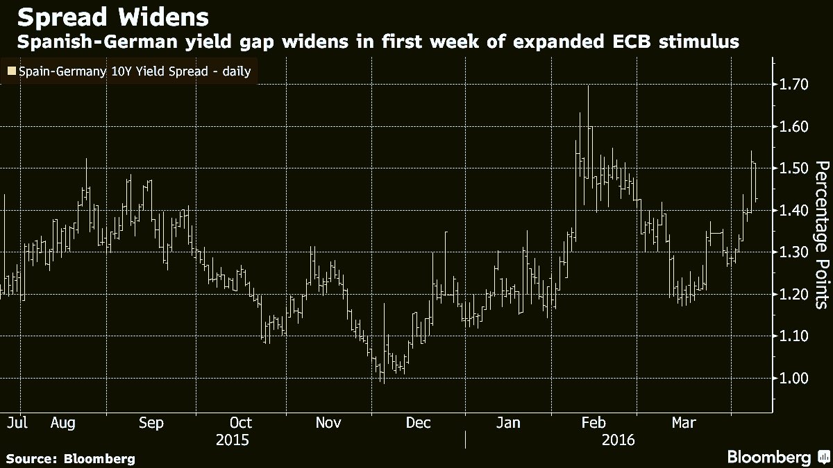ECB has failed to compress risk premia in Eurozone w/ bond buying. Since start of QE, Italy's risk premium has risen