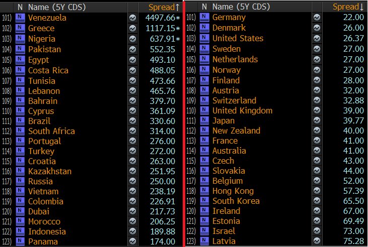 Highest and lowest sovereign CDS spreads...