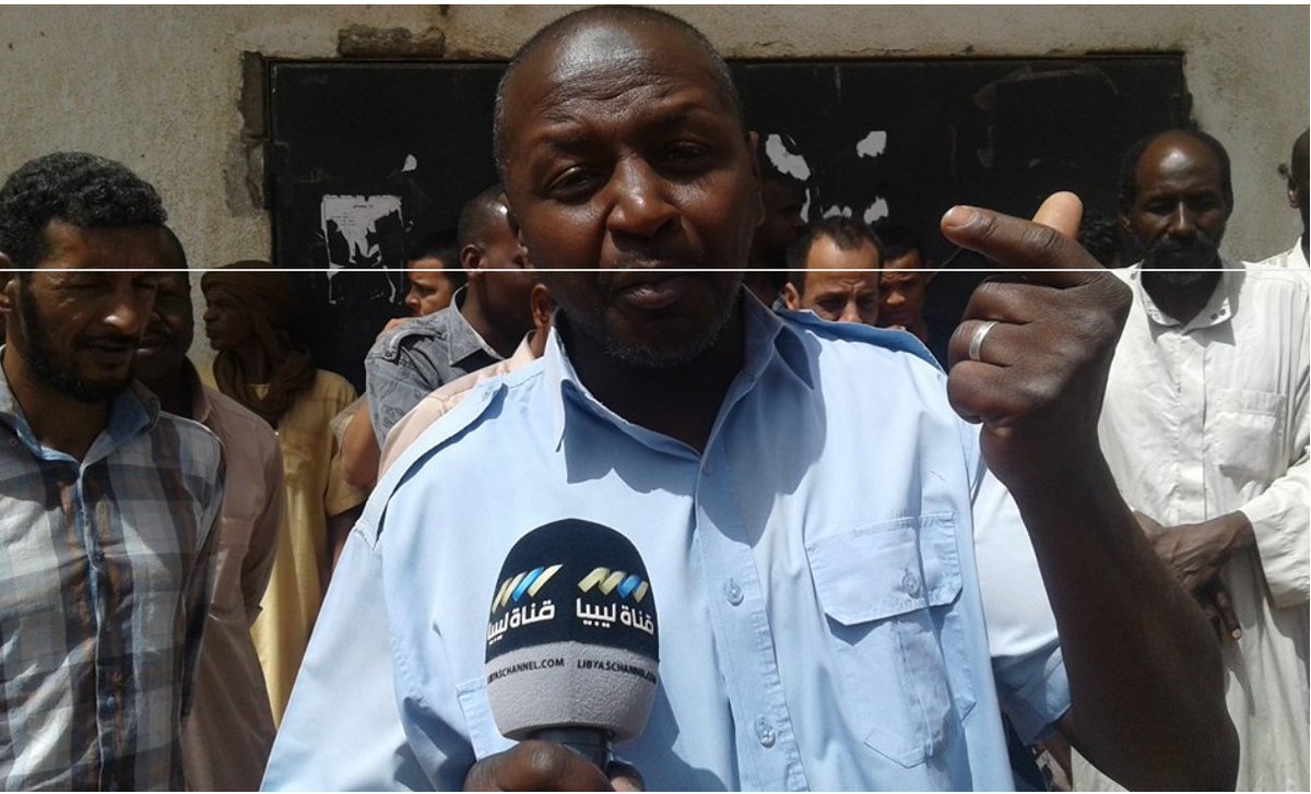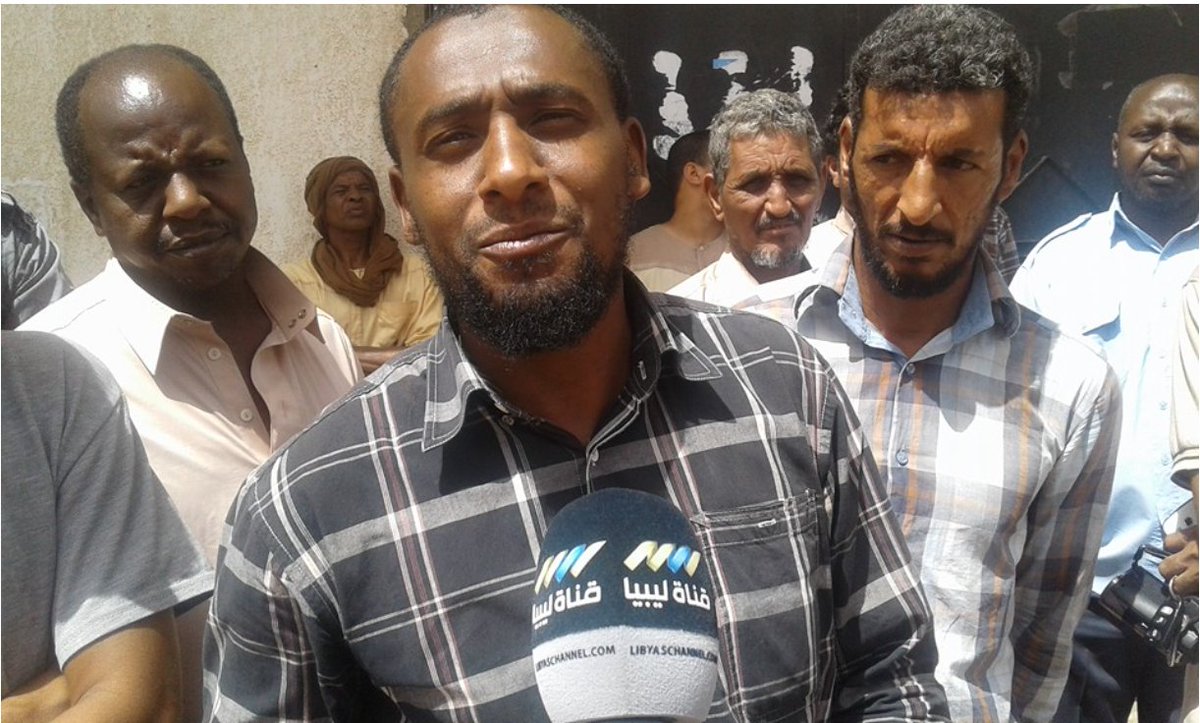 Protest in front of JumhuriyaBank in #Sebha. Besieged by citizens in need of cash, bank temporarily closed its doors