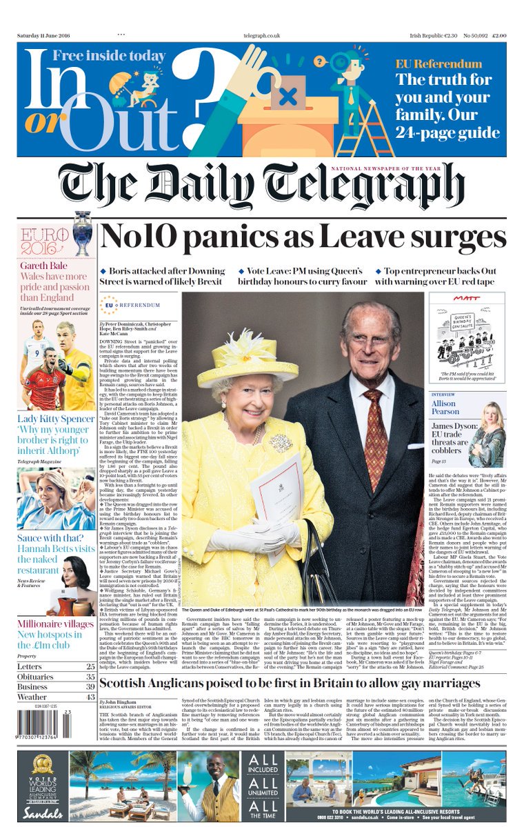 Second poll showing substantial lead for Leave. Leave in front by 6 % .