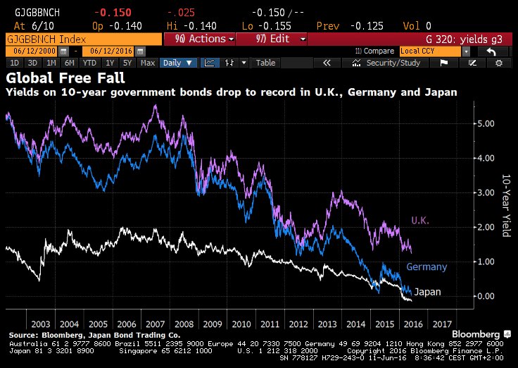 Chart of doom. Bond yields in free fall as global economy angst and #Brexit fears take grip on sentiment.