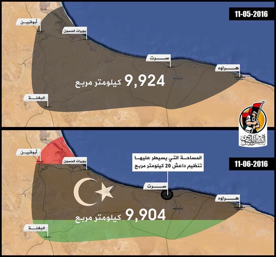#Libya Map showing progress of offensive against IS in Libya in recent weeks.
