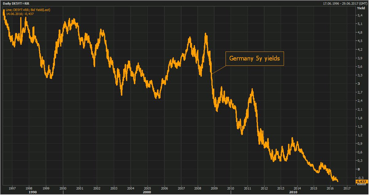 The bond world getting more negative by the day. #Germany's 5y yields just hit fresh life-time low at -0.439%