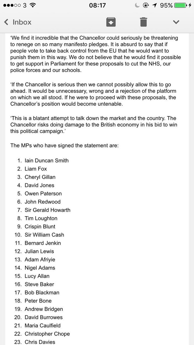 George Osborne dismisses Tory revolt threat over Brexit Budget: http://bbc.in/1UTMuH9