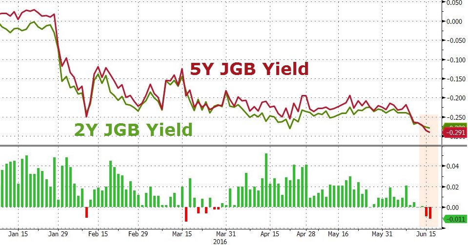 JAPAN'S 10-YEAR YIELD FALLS TO RECORD MINUS 0.205%