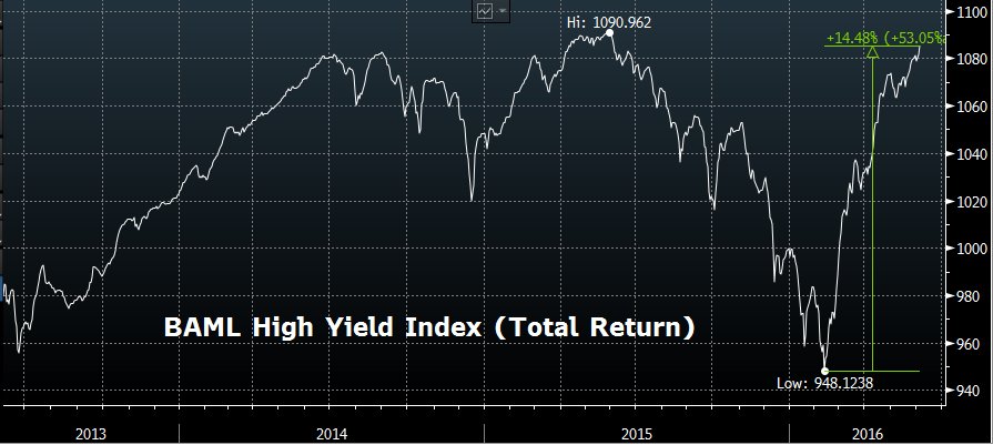 US High Yield Bond Index (total return) up over 14% from its Feb low, now only 0.5% away from a new all-time high.