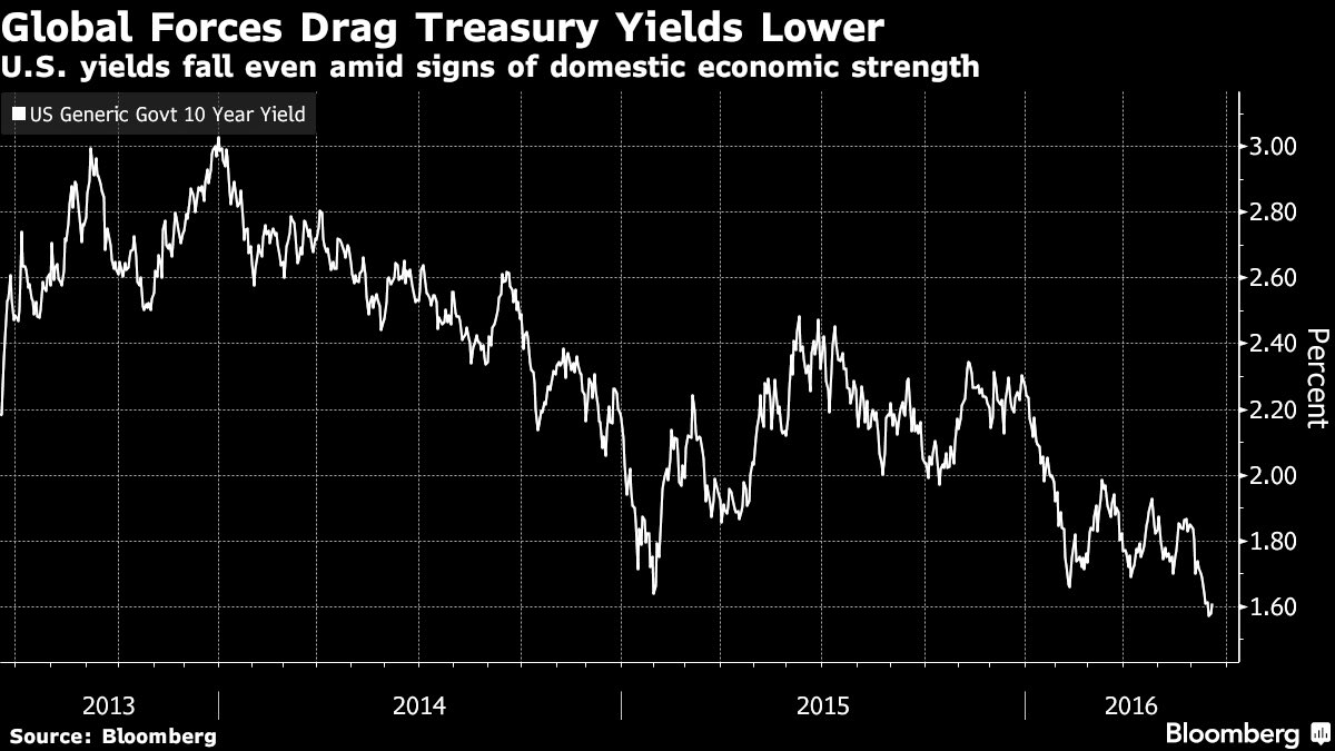 Brexit risk , ECB /Fed/BOJ policies , China risk - lots of factors for why US ten year yield is falling...