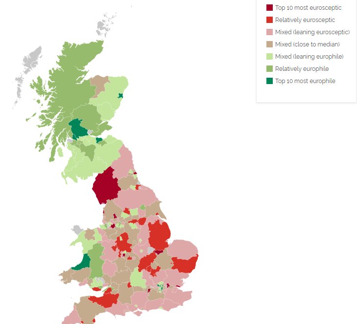 UK: Anti-European regions located mostly in England, less in Wales or Scotland (YouGov poll). #EURef