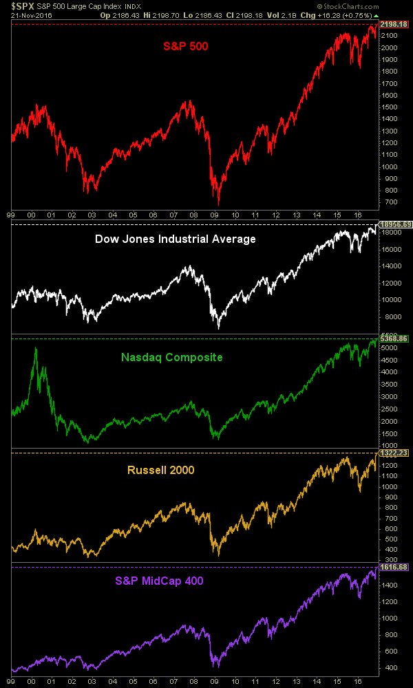 DJ DOW, S&P 500, NASDAQ COMPOSITE EACH CLOSE AT NEW HIGHS