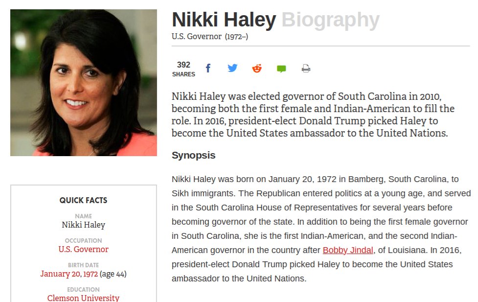 Congratulations to incoming US Ambassador to the UN @nikkihaley, daughter of Sikh immigrants from Punjab #India. Great to have a change @UN!