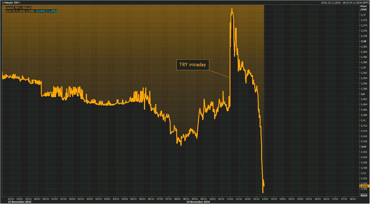 #Turkey CenBank fails to stabilize Lira with first interest rate hike since Jan2014. TRY falls back again following initial jump.