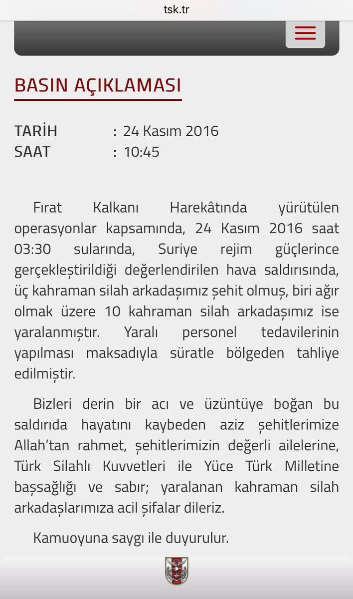 Turkish Army: 3 Turkish soldiers killed by Syrian airstrikes. Turkish media reports around Al Bab.