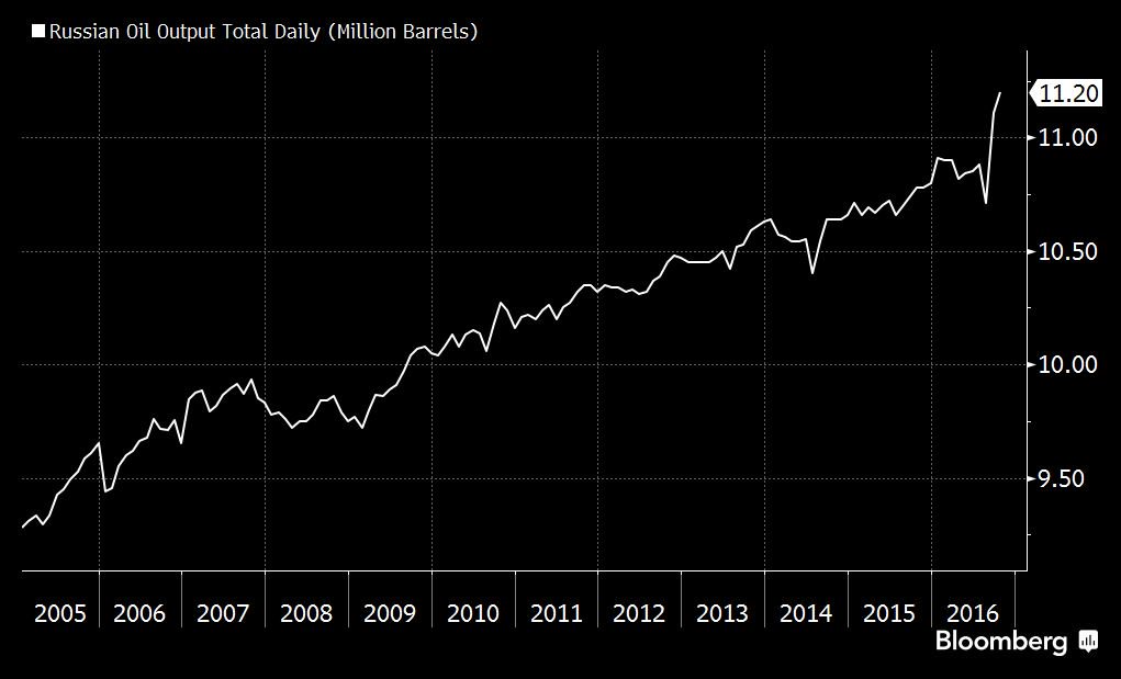 With #oil output at its highest in 30 years, #Russia is telling #OPEC a production freeze is its best offer https://www.bloomberg.com/news/articles/2016-11-24/russia-tries-to-dress-up-oil-freeze-as-cut-amid-opec-pressure … #OOTT
