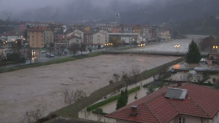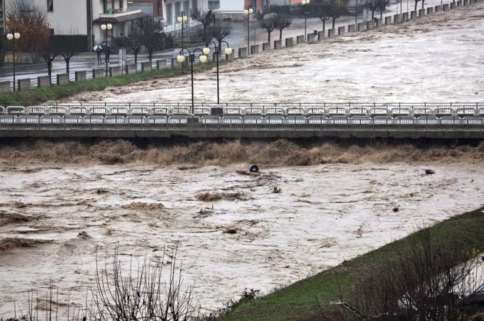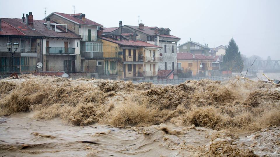 Ceva (Piemonte, NW Italy) and the flooding Tanaro river this afternoon! Photo: L'Unione Monregalese