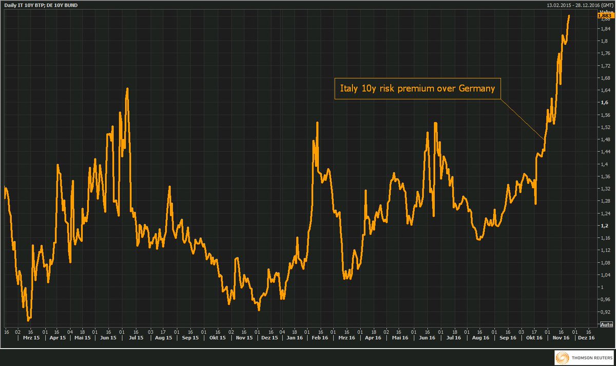 Political risk is getting more expensive for Renzi govt: #Italy sold €3.5bn 2y bonds at 0.283% -0.216% at last auction.