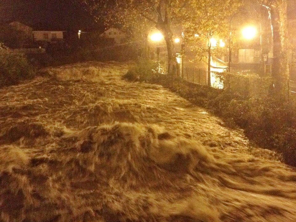Flooding river Messa, Almese, Piemonte, NW Italy this evening. Photo: Giulio Tosco