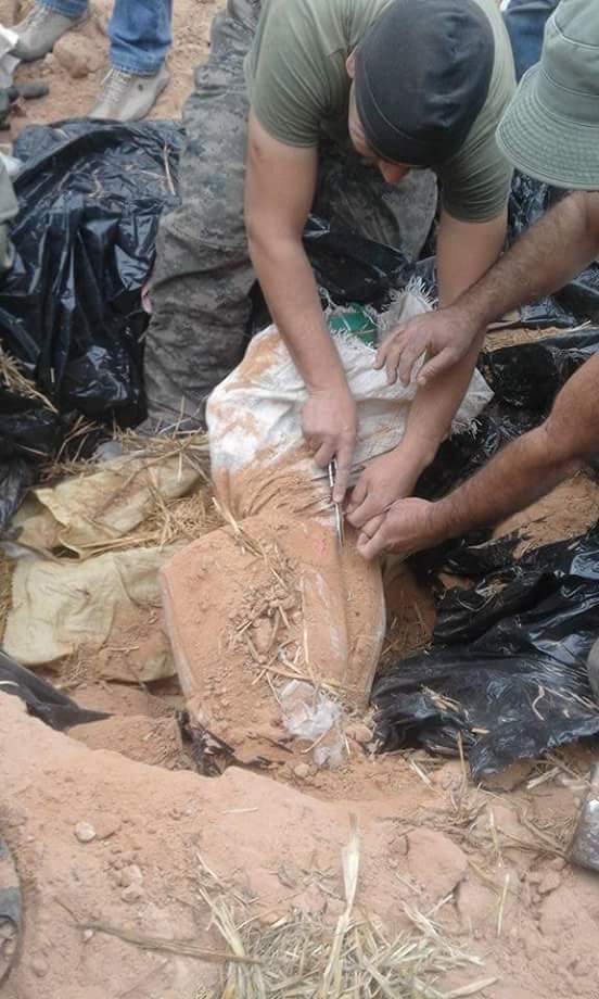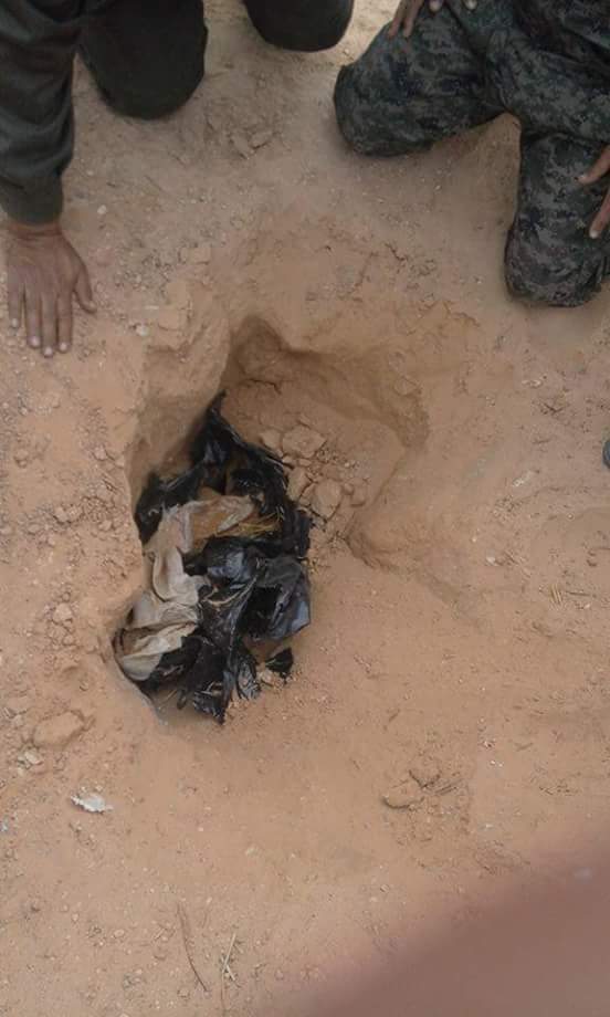 #Tunisia- photos purportedly showing the discovery of the cache, weapons&ammo stored in burlap bags and buried 1.5~ meters underground