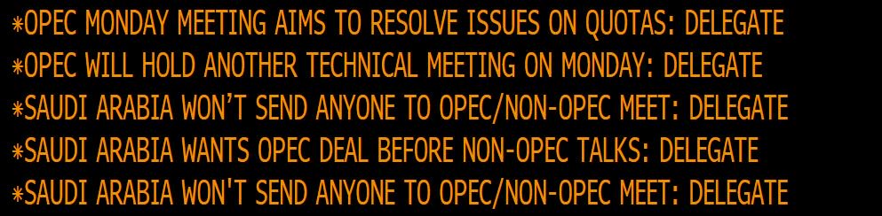 #OPEC | #SaudiArabia sent official letter of non-attendance for monday's meeting. source. reuters. #OOTT