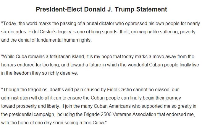 Trump Slams "Brutal Dictator" Castro's "Legacy Of Firing Squads, Theft, Suffering And Poverty" http://www.zerohedge.com/news/2016-11-26/trump-slams-brutal-dictator-castros-legacy-firing-squads-theft-suffering-and-poverty …