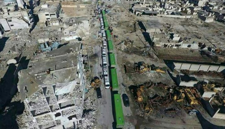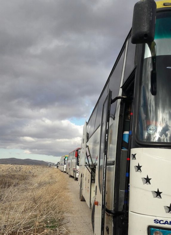 Simultaneously busses left the surrounded cities of Fua and Kfarya with civilians and reached #Aleppo.