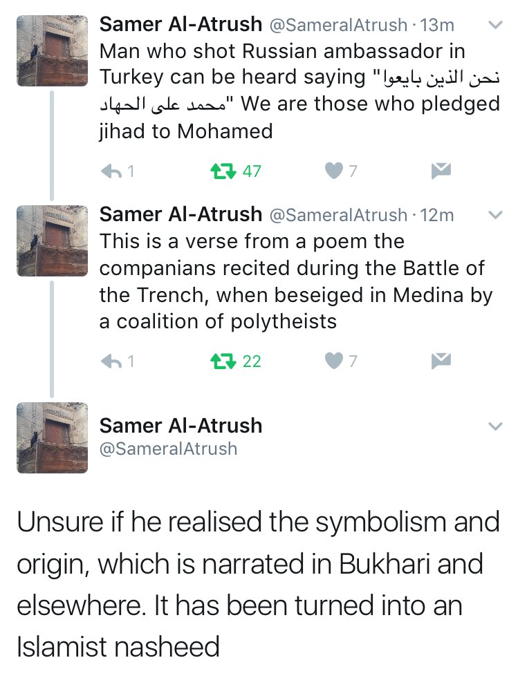 An important correction by @SameralAtrush to above translation of what the shooter said during attack on Russian ambassador.