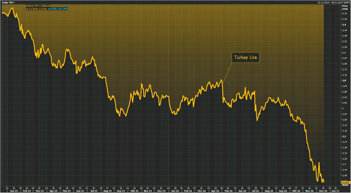 #Turkey Lira drops in part as a reaction to the assassination of Russian Ambassador Andrey Karlov in Ankara.