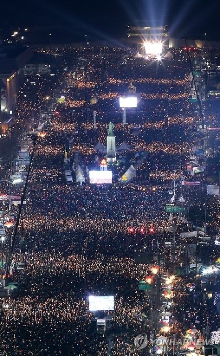 In South Korea, there are over 2 million people protest with candle against president for resignation https://parkgeunhack.com/